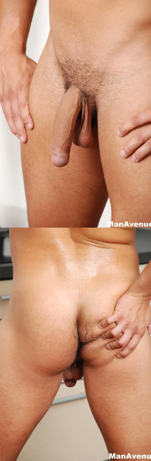 With puppy dog eyes and a huge, muscular body, Angelo gets naked in the kitchen showing off his huge biceps before moving to the table where he bends over to show us his hairy man-hole.